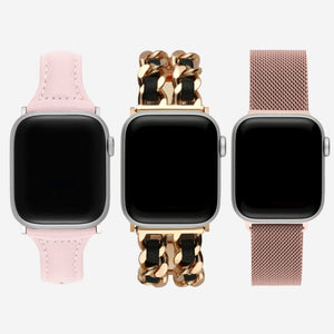 Looking for the perfect gift? Spoil her (or yourself—no judgment) with this dreamy bundle. The Paris Bracelet adds a touch of elegance, the Milanese Loop brings that chic sophistication, and the Slim Leather Band keeps things fun and functional. This set is for the woman who loves to mix things up!