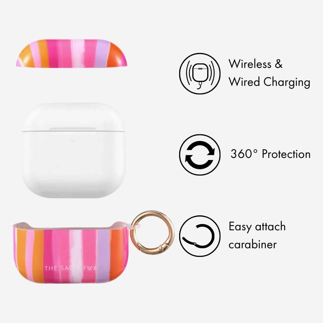 Designed for everyday durability, our Gelato Stripe AirPods Case offers protection without adding unnecessary bulk. Made from a strong TPU + PET construction, they help absorb impact while keeping your case lightweight, sleek & fully wireless-charging compatible.