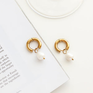 Designed with a chunky, polished huggie hoop and finished with a genuine freshwater pearl charm, these earrings strike the perfect balance between bold and feminine. Each pearl has its own unique shape and lustre, adding a soft, organic beauty to the refined gold.